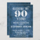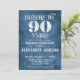 Une invitation rustique à la fête du 90ème anniversaire en burlap de lin bleu avec le type blanc qui dit applaudissements à 90 ans. Idéal pour les fêtes d'anniversaire décontractées. Convient aux fêtes d'anniversaire pour hommes ou femmes.