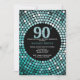90e Invitation d'anniversaire. Parties scintillant noire et Turquoise. Diamant turquoise. Fête d'anniversaire pour adulte. Pour hommes ou femmes. Pour plus de personnalisation, cliquez sur le bouton "Customiser" et utilisez notre outil de conception pour modifier ce modèle.