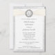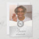 Invitations de 90e anniversaire pour les femmes. Invitations personnalisées de fête d'anniversaire — invitations photo de poche entièrement personnalisables avec arrière - plan vintage en argent damassé et élégant bouton Monogramme sur ruban blanc. Ajoutez votre propre photo et customisez le nom, la date et les détails de l'occasion heureuse. Parfait pour les photos contemporaines ou vintages. Des enveloppes de correspondance, des cartes postales et des cartes de remerciements sont disponibles.**IMPORTANT : Pour les cartes d'invitation standard 5 x 7. Autres tailles et styles disponibles dans la galerie.