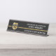 Schreibtisch Namensschild mit einem Dispatcher-Abzeichen mit schwarzem Banner und einer dünnen Goldlinie. Bearbeiten Sie den Text für ein freundliches Geschenk für Ihren bevorzugten Dispatcher 911 für Notdienste.