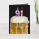 Nummer 91 beleuchtete Geburtstagskandeln in Tasse von Bier auf schwarz zum 91. Geburtstag.