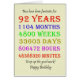92e anniversaire carte comptant les années, jours, mois, heures et minutes. Une carte pour réfléchir ! Les années bissextiles ont été prises en compte !