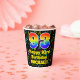 Dieses fröhliche und aufregende musikalische Geburtstagszeitpapier-Cup-Design zeichnet sich durch eine große Zahl "93" mit einem inspirierten Regenbogenspektrum-Farbverlauf aus, zusammen mit der Meldung "Happy 93. Geburtstag" und einem bearbeitbaren Namen. Der Hintergrund zeichnet sich durch ein aufregendes und farbenprächtiges Muster aus, mit Musiknoten und Symbolen verschiedener Farben und Größen. Lebhafte, farbenfrohe Papiertassen wie diese können sich bei einer Geburtstagsparty/Feier zum 93. Geburtstag von jemandem amüsieren. [~Z0000541]