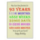 93. Geburtstagskarte, die die Jahre, Tage, Monate, Stunden und Minuten hinunter zählt. Eine Karte, die zum Nachdenken anhält! Es wurden die Leap-Jahre berücksichtigt!