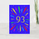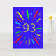 Eine explosive 93. Geburtstagskarte! Was für eine wunderbare Art, Geburtstagsgrüße zu schicken. Die Zahl 93 in hellgelb mit einer Explosion von hellen Farben und Sternen.