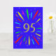 Une carte explosive de 95ème anniversaire ! Quelle merveilleuse façon d'envoyer des salutations d'anniversaire. Le numéro 95 en jaune vif avec une explosion de couleurs vives et d'étoiles.
