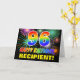 Die Vorderseite dieses bunten, fröhlichen und lustigen Geburtstagskarten-Design verfügt über eine große Zahl "96" und die Nachricht "GLÜCKLICHER BIRTHTAG", beide mit einem Regenbogenspektrum inspirierten Muster, zusammen mit einem kühnen gelben personalisierten Empfängernamen. Die Vorderseite weist auch ein buntes Hintergrundmuster auf, das durch das Aussehen begrabender feierlicher Feuerwerke wird. Im Inneren befindet sich eine individuell einstellbare Geburtstagsgrüße, oder vielleicht gelöscht und links werden, wenn eine Nachricht von Hand geschrieben werden soll. Eine farbenfrohe, anpassbare Geburtstagskarte wie diese könnte eine lustige Art sein, eine Nachricht zu senden, die den sechsundneunzigsten Geburtstag eines Menschen feiert. [~Z0000471]