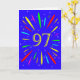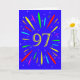 Une carte explosive à 97ème anniversaire ! Quelle merveilleuse façon d'envoyer des salutations d'anniversaire. Le numéro 97 en jaune vif avec une explosion de couleurs vives et d'étoiles.