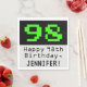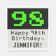 Dieses nerdige und lustige Geburtstagsthema Papier Serviette Design bietet eine große grüne Vintage Video-Gaming-Stil Nummer "98" auf einem schwarzen Hintergrund. Es enthält auch die Geburtstagsgrüßbotschaft "Happy 98. Geburtstag", und einen Namen, der personalisiert sein kann. So lustige Papierservietten könnten bei einem Party, das zum 98. Geburtstag eines Wissenschaftlers, eines Ingenieurs oder jemandem veranstaltet wird, der wirklich gerne Retro-Computerspiele spielt, nützlich sein. [~Z0000404]