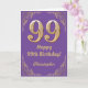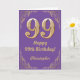 99. Geburtstag Lila und Gold Glitzer Frame Karte