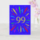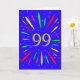 Une carte explosive de 99ème anniversaire ! Quelle merveilleuse façon d'envoyer des salutations d'anniversaire. Le numéro 99 en jaune vif avec une explosion de couleurs vives et d'étoiles.