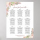 Ce beau tableau de sièges mariage de 9 tables présente un design simple mais élégant avec des roses d'aquarelle peints à la main, des fleurs, et des fleurs dans les tons rose roux, pêche au corail, rose poussiéreux, et mauve, ainsi que des feuilles d'eucalyptus et la verdure du jardin. Il a assigné des sièges pour 90 personnes avec 10 sièges par table avec un titre de calligraphie de script et de l'espace pour les noms du couple et la date mariage en bas. Le design boho chic rustique ajoutera beauté, grâce et charme à votre réception de mariage tout en permettant à vos invités de trouver facilement leurs sièges.
