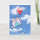Illustration de kitty mignonne avec ballon rouge flottant dans les nuages pour 9ème anniversaire.