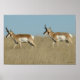 Pronghorn Antelope Bucks Poster. Zwei nette Antilopenbucks, die im späten Herbst durch die trockenen kurzen Grasbeeren gehen. Beachten Sie den größeren Körper des hinteren Buchs, ist er wahrscheinlich der ältere des Paares.