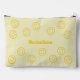 Visages heureux jaune sur un arrière - plan jaune plus clair GRAND sac accessoire. La couleur des faces heureuses, du texte et de l'arrière - plan peut être recolorée comme vous le souhaitez à l'aide de l'outil "modifier la conception" dans le modèle. Vient aussi en petit, s'il vous plaît aller ici pour d'autres options : https://www.zazzle.com/collections/pouches_cosmetic_or_toiletries_bags-119531158092049477?rf=238986706153284958 Différentes couleurs et designs disponibles.