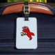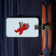 Balise de bagage avec dessin avec illustration d'un pingouin volant un avion rouge ; illustré par Radka Kavalcova / MaxiHarmony
