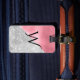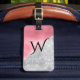 Marque de bagages chic faite en demi-parties scintillant argent et demi-feuille rose, avec une seule lettre monogramme, au milieu. Le verso de la balise contient du texte personnalisé. Personnalisez le monogramme et le texte d'une lettre, à l'avant et à l'arrière de la balise, pour répondre à vos besoins.