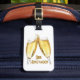Voyagez en style sur votre escapade inoubliable. Identifiez instantanément vos bagages avec cette étiquette de bagage facilement reconnaissable. Une conservation personnalisable avec vos coordonnées au verso. Acrylique avec une sangle en cuir. Bon Voyage !