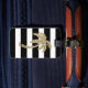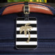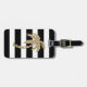 Cette étiquette de bagage avec le bracelet en cuir noir comporte un chic et le motif tropical de palmier d'or de parties scintillantes de faux sur un arrière - plan des rayures noires et blanches audacieuses est parfait pour la femme à la mode et élégante. Il a sophistiqué et la copie girly est grande pour beaucoup de cadeaux et d'occasions. Appréciez cette conception moderne et créative pour votre prochain achat !