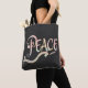 A beautiful, flowing script of the word "Peace" fe Tasche