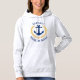 Une ancre nautique conçue sur mesure, des feuilles de lauriers de style or et une étoile d'or avec grade de capitaine ou autre titre et votre nom ou nom de bateau personnalisé sur un sweatshirt sweat - shirt à capuche pull-over femme. Plusieurs couleurs à choisir. Fait un grand cadeau.