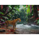 "A Chance Encounter" - farbiges Portrait über Wildtiere. In den Tiefen des Regenwaldes des Amazonas treffen sich zwei Raubtiere der Spitzenklasse am Ufer des Wassers. Der Jaguar, heftig und gepocht, verschließt die Augen mit dem Kaiman, seine Kiefer weit im Widerspruch. Die tropische Flora ist farbenfroh, eine Erinnerung von Schönheit und Gefahr in der Wildnis. Diese Szene fängt das empfindliche Gleichgewicht des Überlebens im ungezähmten Herzen der Natur ein.
