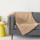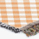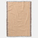A checkered pattern throw blanket with orange and white squares, bordered by gray fringes. Displayed horizontally and vertically, reflecting a cozy aesthetic.