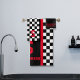 Traversez la ligne d'arrivée dans le décor de salle de bain avec le set de serviettes À damiers Racing Stripe Black and Red. Personnalisez avec votre nom et votre initiale.