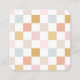 Carte d'affichage à oreilles avec un joli pastel à damiers motif. Les trous modèles peuvent être ajustés ou supprimés, ainsi que toutes les informations de votre entreprise. Ajoutez vos médias sociaux ou votre site web en bas.