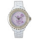Superbe montre faciale en pierre blanche, avec notre À damiers conception en spirale florale violette - Images sous licence et droits d'auteur de Graphics Factory