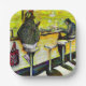 Original painting of two individuals are seated at a counter in a cozy diner. Bright yellow lighting illuminates the scene, creating a warm and inviting atmosphere.