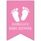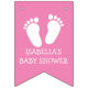 Bannière rose nommée personnalisée d'étamine de partie de baby shower d'empreintes de pas.