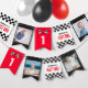 Cette bannière de bunting présente un design de voiture de course rouge, noir et blanc pour un 1 an, avec le populaire dicton "rapide". Personnalisez-le en ajoutant des photos personnalisées avec le nom et l'âge de votre enfant. Une bannière ludique et colorée, parfaite pour une fête d'anniversaire sur le thème de la voiture de course !