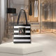 A Gold Floral Monogram | Schwarz-weiße Streifen Tasche