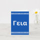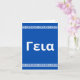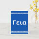 Griechische Begrüßungskarte mit lustigem Design und griechischer Begrüßung, aFAQα, Hallo auf Griechisch. Diese Grußkarte in griechischer Sprache ist für Ihre eigene Nachricht leer.