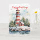 A red and white lighthouse in winter. Suitable for a birthday for anyone