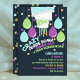 Si vous avez cette fête amusante et créative, vous aurez besoin d'une invitation ludique et créative ! Ce design présente un gâteau à l'envers avec des bougies. Il y a des ballons qui sont aussi à l'envers avec les mots "fou à l'envers à l'envers à l'envers" ! Les couleurs sont bleues, vertes et violettes et conviennent à tous les genres.