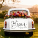 This modern "Just Married" design makes a fun addition to the couple's getaway car.