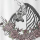 This A Little Wild One Baby Zebra Print Backdrop features a hand-drawn zebra mama and baby surrounded by blush, mauve, and lilac roses with delicate twigs for a soft, moody floral feel. Drawn in black ink. Bold black-and-white zebra print accents add striking safari contrast, with the title at the top and personalized name, event, and date below.