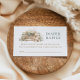 Every great story needs supplies. Elegant "Diaper Raffle" enclosure card for baby shower invitations includes a stack of beautiful vintage hardcover books adorned with pastel pink and blush flowers and a sweet little teddy bear. Please personalize the golden bronze and rich green custom text to ask guests to bring a pack of diapers and be entered to win a prize.