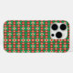 A phone case featuring a vibrant geometric pattern of red, green, and white diamonds and triangles. The design feels festive and lively.