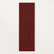 A product image shows two rectangular scarves, one vertical and one horizontal, with a black and red checkered pattern on a plain white background. The tone is simple and modern.