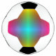 A soccer ball with a rainbow gradient pattern