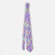 A tie with a vibrant, colorful paisley pattern in purple, red, green, and blue against a white background, shown both front and back on a plain white surface.