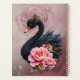 A touch of rose and swan's glow. This enchanting design depicts an elegant black swan, immediately eye-catching with its smooth, dark plumage and bright orange beak. A delicate floral arrangement perches atop its head, emphasizing its regal grace. Delicate pink blossoms, presumably peonies, are artfully grouped around the swan's body, lending the image a romantic and elegant touch. The background consists of a gentle gradient in shades of pink, immersing the scene in a dreamy, almost magical atmosphere. The interplay of the jet-black feathers, the vibrant flowers, and the soft gradient creates a harmonious overall image full of grace and love.