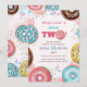 A vibrant 2nd birthday invitation with donuts. Celebrate your little one's second birthday in style and style! This sweet and colorful invitation, featuring colorful donuts and sprinkles, is perfect for a "Two Sweet"-themed children's party. The design is modern and fun, instantly uplifting the mood and creating a festive atmosphere.