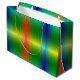A vibrant gift bag featuring a glossy, rainbow große geschenktüte