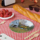 Auf dieser Papiertafel befindet sich eine alte verlassene Hausbucht in Vermont im Herbst. Wählen Sie Ihren Stiltisch. Ideal für Party und Picknicks.