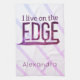 Personalisiertes Eis-Skate-Handtuch für Schaufeln (für Jungen und Mädchen) - ein schönes figürliches Skaten-Geschenk! Und es ist ein nützliches Geschenk, da es wichtig ist, Ihre Klingen nach der Praxis zu trocknen!Farben: Rosa bis lila auf blauen rosa Linien Hintergrund.Design: "Ich lebe auf der Kante" + Silhouette des Skate Blade + personalisieren mit dem Namen des Skaters.