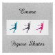 Girl's Figure Skater Glossy Poster Personalisiert mit ihrem Namen. Silber Imitate Glitzer funkeln mit 3 verschiedenen Skatern in der Mitte.